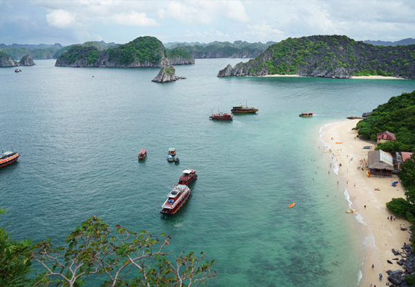 后前往越南最浪漫、最漂亮的岛屿—[天堂岛],岛上自由活动。细白的沙滩上可以玩各种沙滩游戏(游戏道具自备),在指定区域还可以游泳,登上岛屿的山顶俯视下龙湾海上桂林全景,拍摄您心意的美照。
