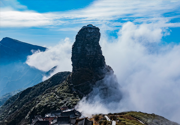 早餐后乘车前佛教名山——梵净山景区(游览时间4小时左右)(景区电瓶车20元/人、索道160元/人,费用需自理),登国家自然保护区,探访联合国“人与生物圈”保护网,经东线上山,穿行原始森林栈道,观梵净山标志性景物——蘑菇石,自由拍照留恋。可根据自身情况选择:Ⅰ.攀登「红云金顶」,海拔2336米,晨间红云瑞气常饶四周,因此而得名。山峰拔地而起,垂直高差达百米,上半部分一分为二,由天桥链接,两遍各建一庙,一边供奉释迦佛,一边供奉弥勒佛。由此印证现代佛(释迦牟尼)向未来佛(弥勒佛)的交替。Ⅱ.或攀登「老金顶」,海拔2494米,放眼四顾,身边远远近近的石林出露无遗,千奇百怪且各具魅力,而巍峨起伏的群山,茫茫无际的林莽,似乎就微缩成眼前一面波光荡漾的碧海,就连气势雄伟的新金顶,此时也不过是脚下一座石磴而已。梵净山犹如巨大的天然氧吧,在这里呼吸沁人心肺的新鲜空气,远离城市的喧嚣,体验宁静致远的感觉。