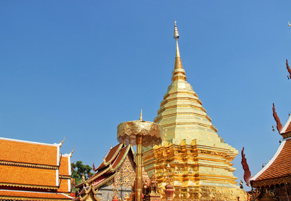 早餐后专车前往素贴山,沿着306个台阶攀登而上来到清迈最著名的双龙寺一座由神象选址,充满传奇色彩之著名的佛教避暑胜地,寺内金璧辉煌,香火鼎盛,寺庙里埋有佛主的舍利子,是虔诚佛教信徒向往朝拜的地方。我们也可以在寺庙后的观望台居高临下远眺清迈市全景。午餐后前往魏功甘古城(坐缆车游古城),古城位于清迈南部,建于佛历1829年,曾被洪水没入地下,1984年才被发掘出来。目前已挖掘出超过八个以上的大型寺庙,有些建筑可以看出缅甸风格,也发现明朝万历年间瓷器,由此推断出古城也经历过辉煌的年代。接着前往参观古城内的大塔寺,此寺建于公元1441年是清迈有名的佛寺之一;