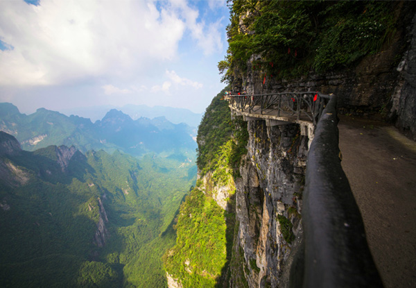 后前往张家界国家森林公园,游览世界自然遗产的核心袁家界风景区(百龙天梯往返费用144元需自理,游览时间约1.5小时);袁家界位于杉刀沟北麓,是以石英岩为主构成的一座巨大而较平缓的山岳,既有石丛小涧、银瀑高泻,又有竹林繁茂、苍松垂壁。由于水丰林密,空气极为清新。是张家界公园又一处风景集中地。主要游览:天下第一桥,迷魂台,哈利路亚山,(电影《阿凡达》中“悬浮山”的取景山)后花园等;后前往游览杨家界景区(游览约1.5小时)最高峰“一步登天”海拨1130米。境内沟壑纵横,溪水长清,植被茂密,森林覆盖率达95%;赏绝美峰墙。