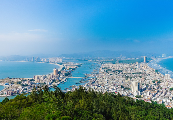 10:00 抵达双月湾观景台山脚(需徒步40-60分钟上至山顶,再徒步下山),欣赏最美的双海湾美景,由大亚湾和红海湾畔相邻的两个半月形海湾组成。两条沙垅直奔大星山,如蛟龙出海,似双龙戏珠,有静有动,十分壮丽。大亚湾畔的半月湾,微风细浪,阿娜多姿。红海湾畔的半月湾,波涛汹涌,气势磅薄。这里三面环海,风景如画。洁白的沙滩,黛绿的林带,碧蓝的大海,多姿的礁石,迷人的小岛,穿梭的渔舟,构成了动静交融的南海渔港风光。