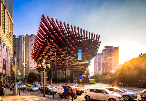 后陪同会带您前往重庆美食最集中的观音桥步行街美食一条街,这里可以满足您对美食的所有要求(本次中餐费用由陪同统一结算,您可以自由选择您喜欢的特色小吃)。有麻辣入味的丁家坡洋芋有酸爽地道的猫叔米线有温养滋补的虾子羊肉粉有外酥里嫩的烤羊排有Q弹细嫩的烤鸭肠有酥烂柔滑的烤猪蹄有麻香扑鼻的麻辣串    有香辣可口的卤郡坝尽情品尝各种地道重庆小吃过后,带着满足感一起开始下午新奇的旅程!到了重庆,您最需要了解的是重庆的立体交通网,首先带您体验的就是重庆轻轨,乘坐轻轨2号线穿楼而过一定是您想感受一番的。